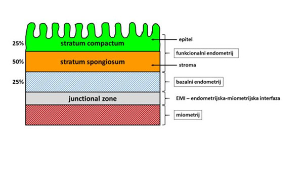 Ovisno o fazi ciklusa endometrij je debeo do 7 mm, a podijeljen je u nekoliko slojeva (slika 1).