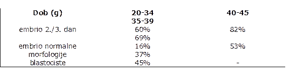 Tablica 2.Učestalost kromosomskih nenormalnih zametaka u IVF-u ovisno o dobi