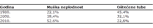 Tablica 7. Promjene nekih uzroka neplodnosti tijekom 30 godina praćenja