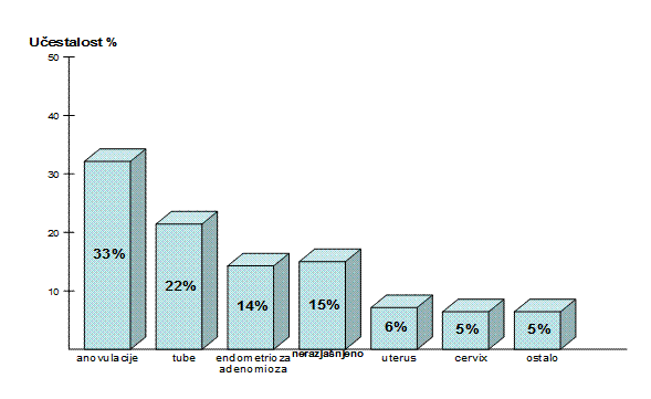 Prema istim analizama, sadašnji su glavni uzroci ženske neplodnosti prikazani u slici 7.